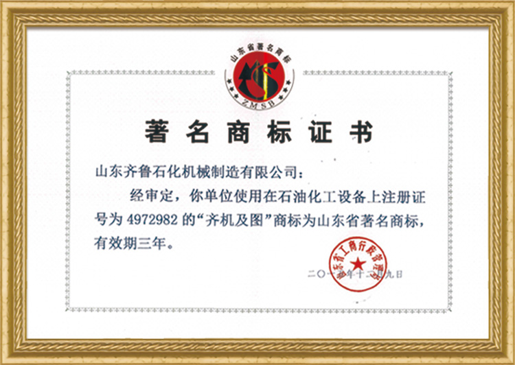 山東省著名商標(biāo)證書(shū)